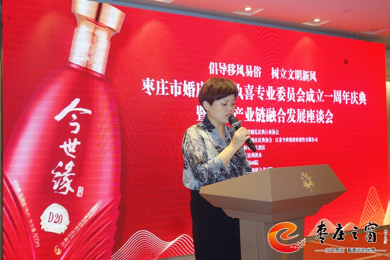 在專(zhuān)委會(huì)成立一周年之際,為了更好地開(kāi)展工作,棗莊市婚慶慶典協(xié)會(huì)特舉辦專(zhuān)委會(huì)成立1周年慶典暨婚慶產(chǎn)業(yè)鏈融合發(fā)展座談會(huì)。原棗莊市兩新組織黨工委副書(shū)記、市民政局一級(jí)調(diào)研員叢方佐在座談會(huì)上致賀詞,山東省婚禮慶典行業(yè)協(xié)會(huì)、棗莊市婚慶慶典協(xié)會(huì)、江蘇今世緣酒業(yè)銷(xiāo)售有限公司、舜和棗莊大酒店、棗莊濱利酒水、天衢書(shū)畫(huà)院、棗莊市新聯(lián)會(huì)書(shū)畫(huà)院、市中區(qū)新聯(lián)會(huì)、大窯飲品、棗莊市婚慶協(xié)會(huì)執(zhí)喜專(zhuān)業(yè)委員會(huì)、棗莊市婚慶協(xié)會(huì)主持人專(zhuān)業(yè)委員會(huì)、棗莊市婚慶協(xié)會(huì)攝影攝像專(zhuān)業(yè)委員會(huì)等代表在座談會(huì)發(fā)言,對(duì)棗莊婚慶行業(yè)與相關(guān)婚慶產(chǎn)業(yè)的融合發(fā)展提出建議和期望。周年慶還給從事婚慶行業(yè)三十周年的薛發(fā)源同志頒發(fā)卓越成就獎(jiǎng),同時(shí),專(zhuān)委會(huì)專(zhuān)家顧問(wèn)團(tuán)新聘任7位同志為執(zhí)喜專(zhuān)業(yè)委員會(huì)顧問(wèn),進(jìn)一步提高了專(zhuān)委會(huì)的專(zhuān)業(yè)水平,在今后為廣大群眾提供更好的專(zhuān)業(yè)化服務(wù)。(楊仁成 攝影)