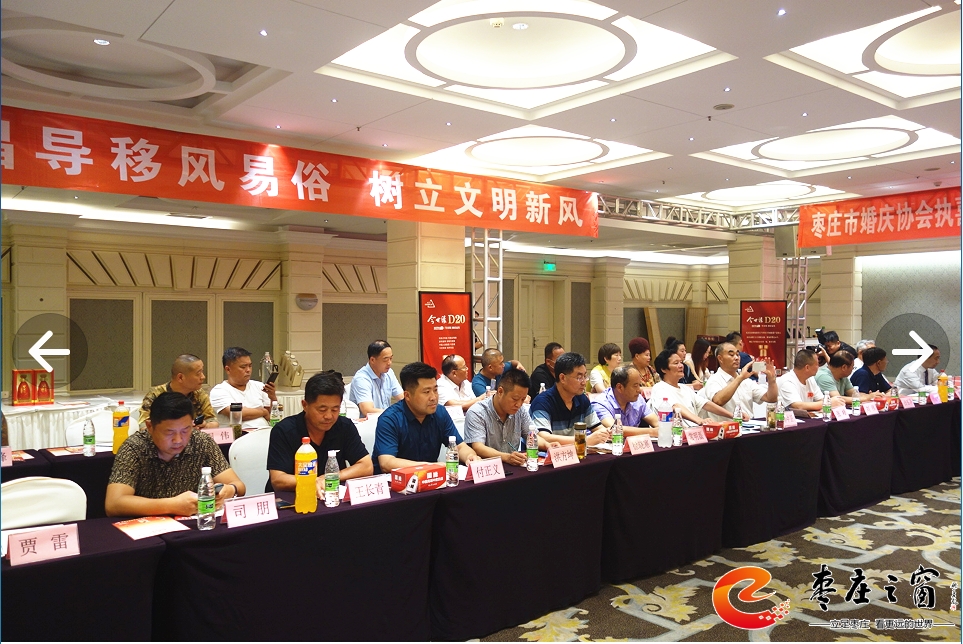 為貫徹落實(shí)上級(jí)部門(mén)提出的倡導(dǎo)文明、喜事新辦,移風(fēng)易俗,減少陋習(xí),新事簡(jiǎn)辦的工作方針,建立健全婚禮執(zhí)喜的有序化,更好的構(gòu)建和諧社會(huì),為“工業(yè)強(qiáng)市、產(chǎn)業(yè)興市”做貢獻(xiàn)。7月12日下午,由棗莊市婚慶慶典協(xié)會(huì)、江蘇今世緣酒業(yè)銷(xiāo)售有限公司主辦的棗莊市婚慶慶典協(xié)會(huì)執(zhí)喜專(zhuān)業(yè)委員會(huì)成立一周年慶典暨婚慶產(chǎn)業(yè)鏈融合發(fā)展座談會(huì)在舜和棗莊大酒店舉辦,執(zhí)喜專(zhuān)委會(huì)成員、專(zhuān)委會(huì)顧問(wèn)團(tuán)成員、棗莊婚慶界、餐飲界、商業(yè)界代表60余人參加活動(dòng)。