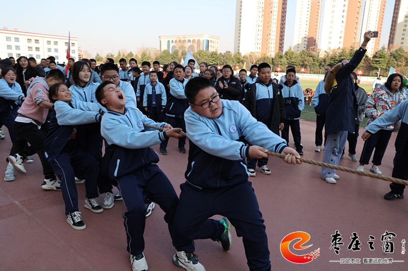 一根繩一條心 不言棄奮力拼 ——薛城區(qū)舜耕中學(xué)舉行拔河比賽活動
