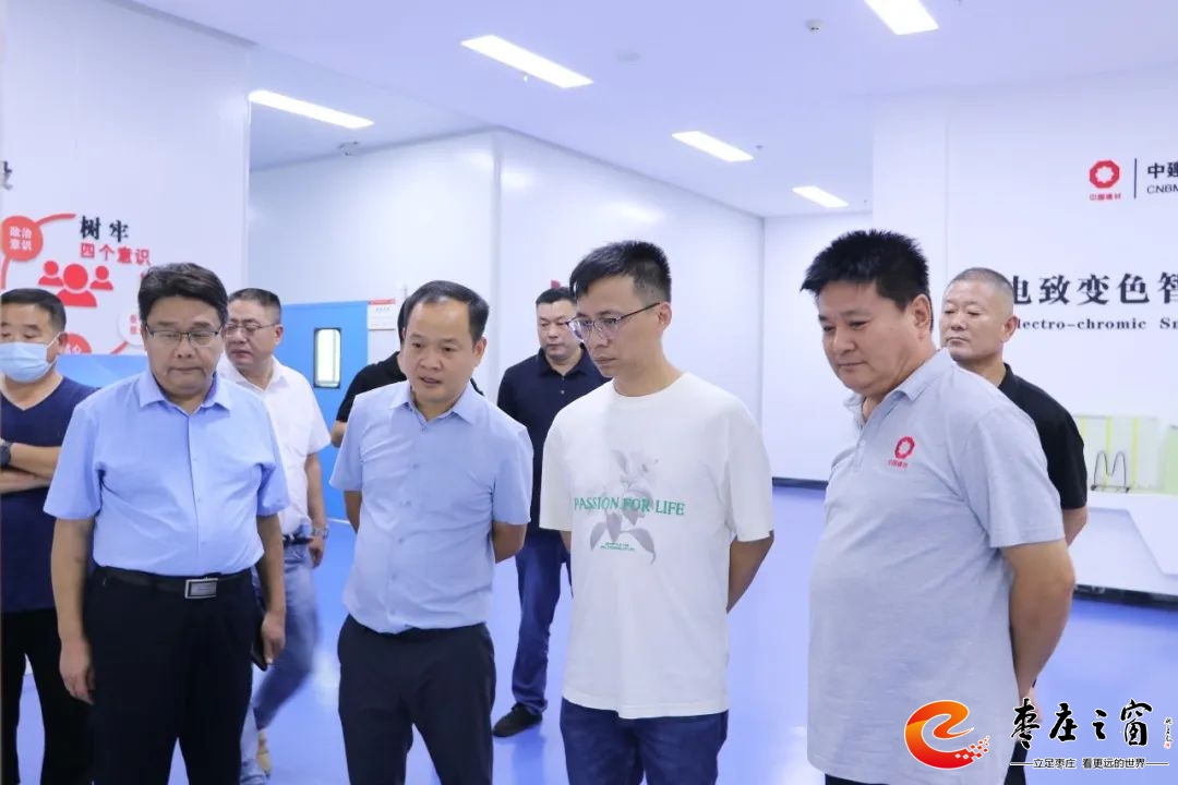 企業(yè)家一行先后考察了科創(chuàng)院技術(shù)展示中心、無(wú)機(jī)功能材料與智能制造重點(diǎn)實(shí)驗(yàn)室、電致變色智能玻璃中試線,胡仲春詳細(xì)介紹了科創(chuàng)院近年來(lái)發(fā)展情況。(來(lái)源:中建材科創(chuàng)院)